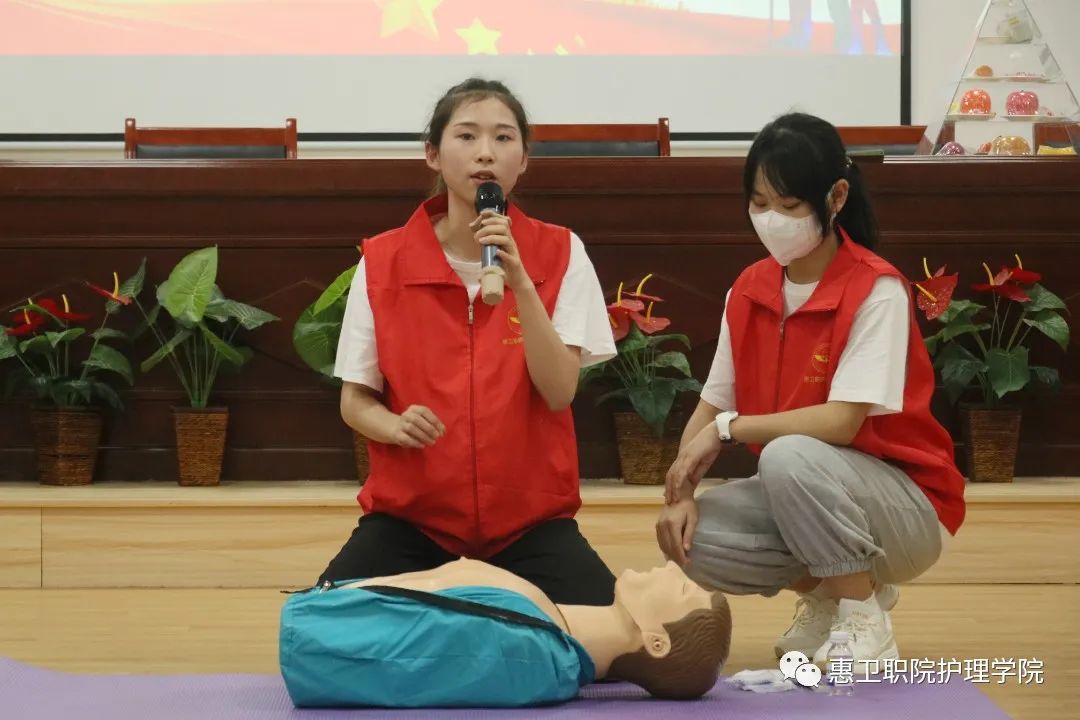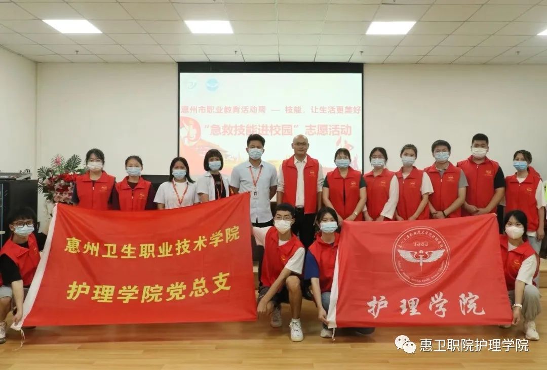 为了进一步推广应急救护技能,普及健康保健知识,增强生命健康安全意识,弘扬志愿服务精神,护理学院党总支于5月26日下午前往惠州市科贸职业技术学校开展“急救技能进校园”志愿活动。