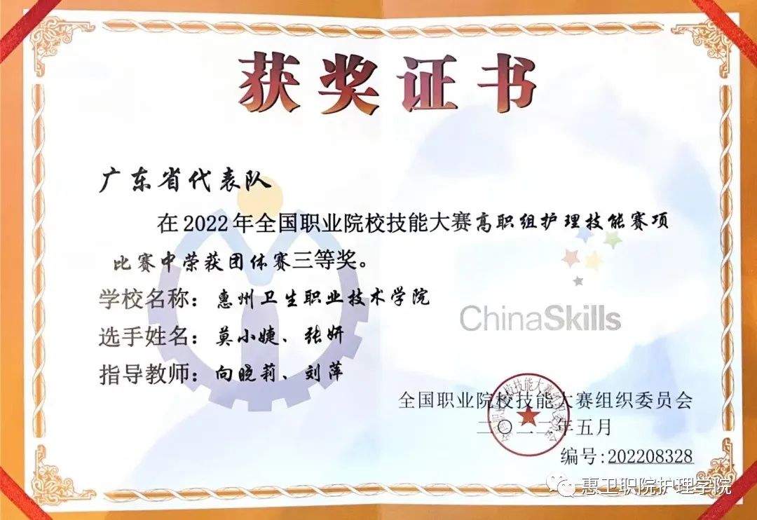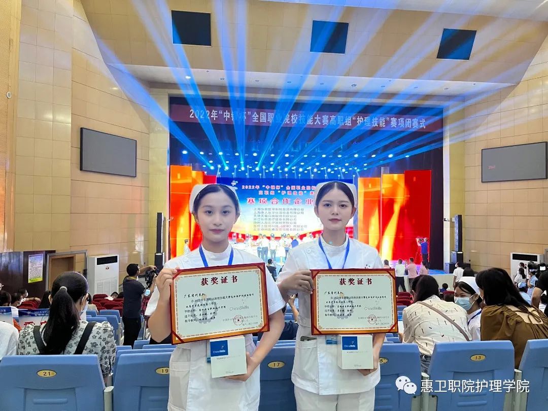 2022年8月18-21日,由中华人民共和国教育部发起、联合相关部门、行业组织和地方共同举办的2022年全国职业院校技能大赛(高职组)护理技能赛项在莱芜职业技术学院举行,来自全国68所高校的136名选手参加了本次比赛。经过3天的激烈角逐,我校护理学院学子莫小婕、张妍同学凭着顽强拼搏的精神,沉着应战,取得大赛三等奖的好成绩!