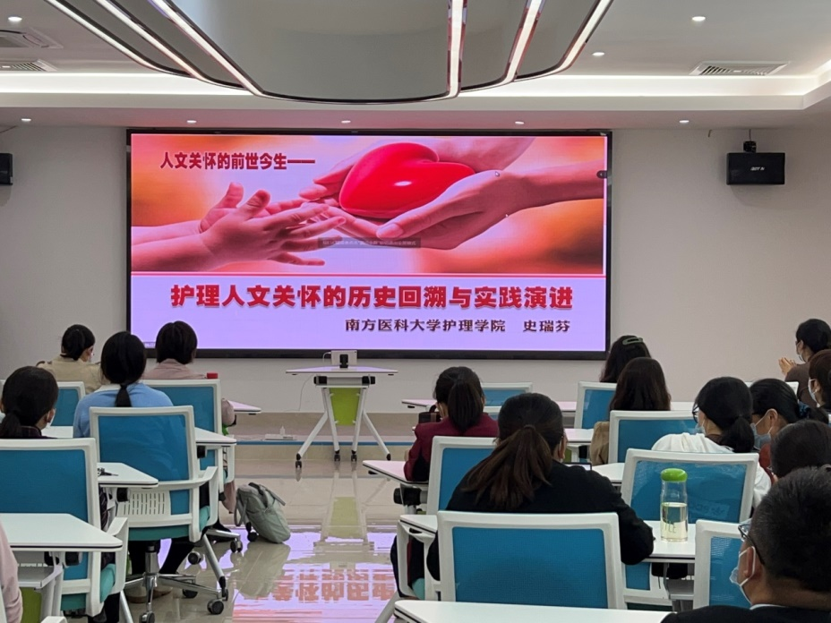 史瑞芬教授的讲座内容科学严谨,见解独到。从“人文关怀的历史朔源”开始,介绍了护理专业人文关怀的奠基、从国际护理发展史到中国护理发展史、再到中国早期护理中的人文关怀等内容,围绕“人文关怀的疵纇疏漏”,在护理操作、护患沟通、护理研究中的反思等三个方面,指出了目前护理领域存在的问题。随后,详细阐述了“人文关怀的护理实践”,指出践行人文关怀,需要做到尊重人的生命尊严、满足人的健康需要、关注人的整体存在。