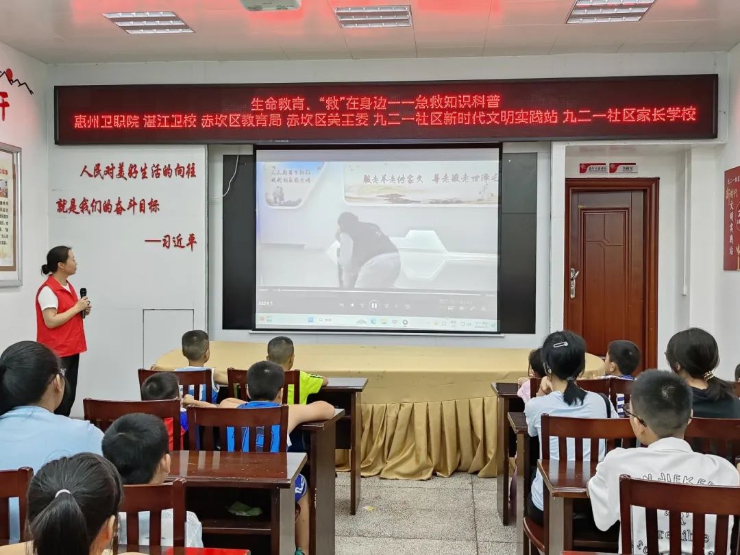 为加强我校与湛江市赤坎区寸金街道九二一社区结对学校与社区之间的交流,丰富群众的急救知识、提升急救能力,推进平安社区建设,我校紧密联系社区与群众,在“三下乡”活动期间教学以《生命教育,“救”在身边》为主题的急救技能培训课程。