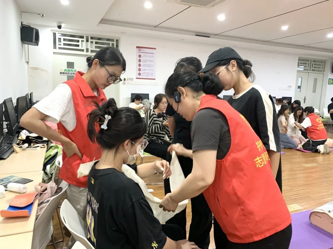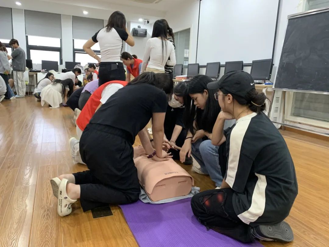为了深化同学们对急救知识的理解,李文婷老师首先对急救的基础理念进行了全面的讲解,确保每位同学都能领会急救的必要性和紧迫性。随后,她详细讲解了各种急救设备的使用方法,包括自动体外除颤器(AED)、止血带、绷带等的正确操作。课程内容还包括了心肺复苏(CPR)和伤口包扎等核心技能。紧接着,老师指导同学们进行了实际操作练习。通过角色扮演和情景模拟,参与者在实践中掌握了应对真实急救情况的技能。此外,我们还加入了互动环节,鼓励同学们积极提问和分享经验,使得这次宣传活动既生动又富有成效。