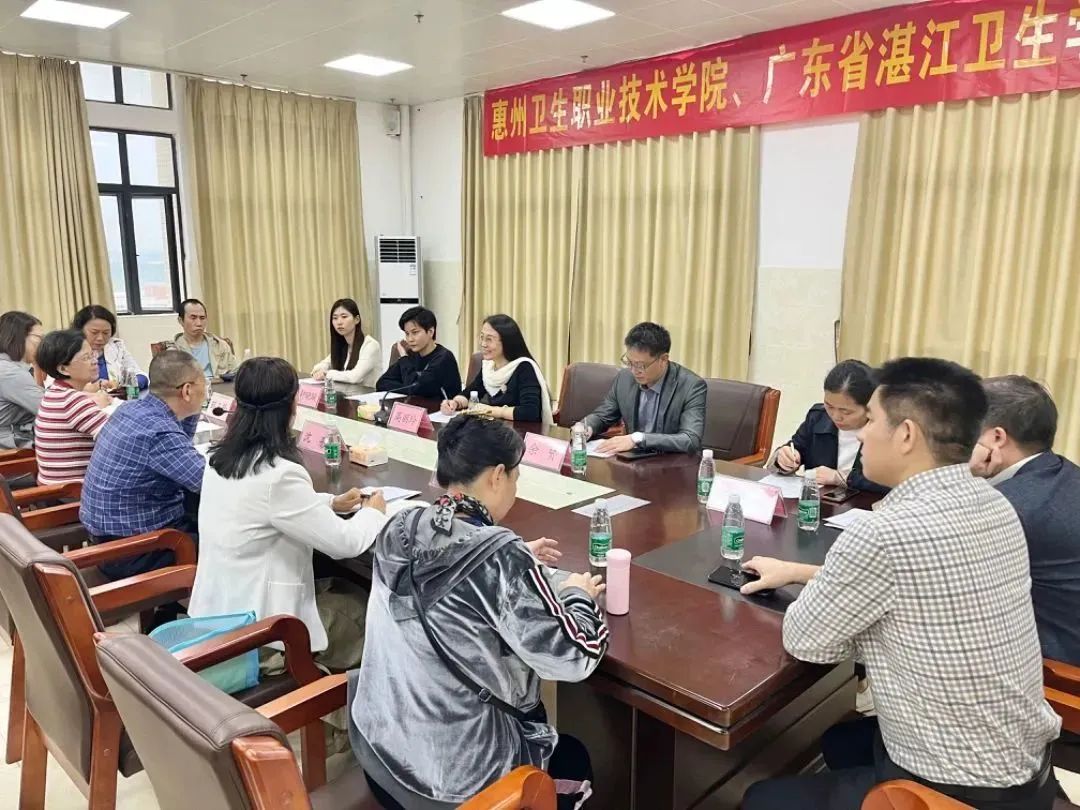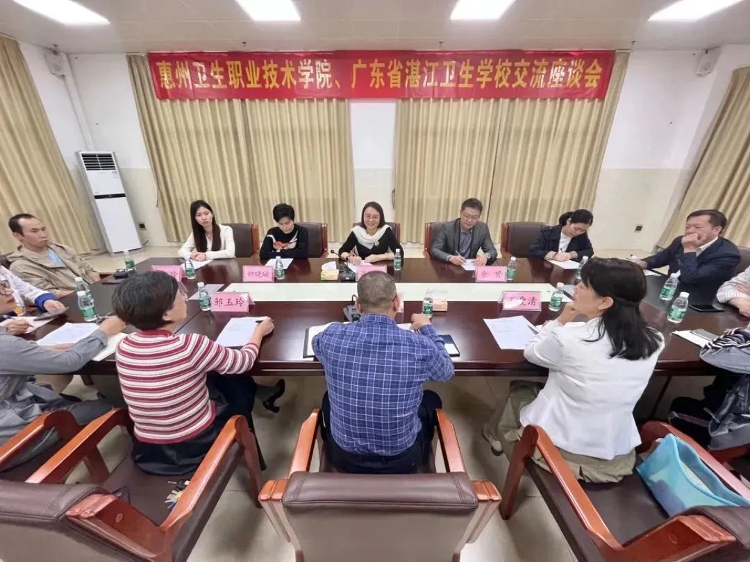 2023年11月29日,在护理学院院长高丽玲的带领下,学校学工部部长余赟、护理学院副院长钟晓璇、外科教研室主任李文婷、学院团委书记陈裕玲一行5人前往广东省湛江卫生学校调研学习、交流座谈。湛江卫生学校校长沈彤、副校长邹玉玲、工会主席王爱清、护理系主任潘如萍出席本次会议。