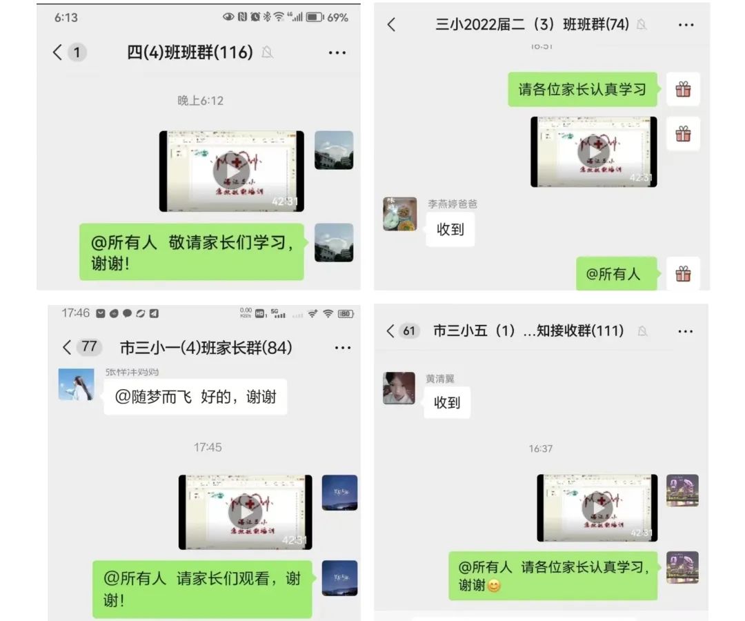 会后,各班级班主任将培训视频分享至家长群,为无法及时参与培训的学生家长提供视频学习。