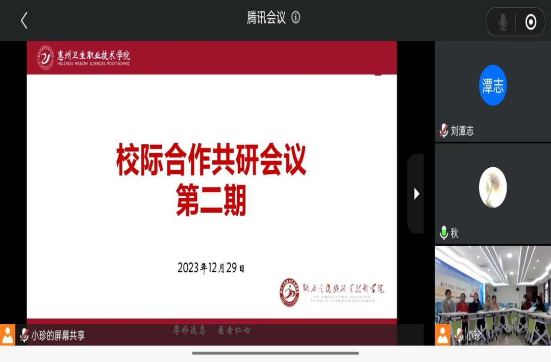 2023年12月29日,黔西南民族职业技术学院领导、管理团队与我院护理、助产专业进行第二次线上交流会议,护理学院党总支书记江有、院长高丽玲,副院长何晓秋、童小珍,专业主任付芳、唐娟,教研室主任杨晓仙、王艺艺、李文婷等共同参加会议,会议由助产专业主任唐娟主持。