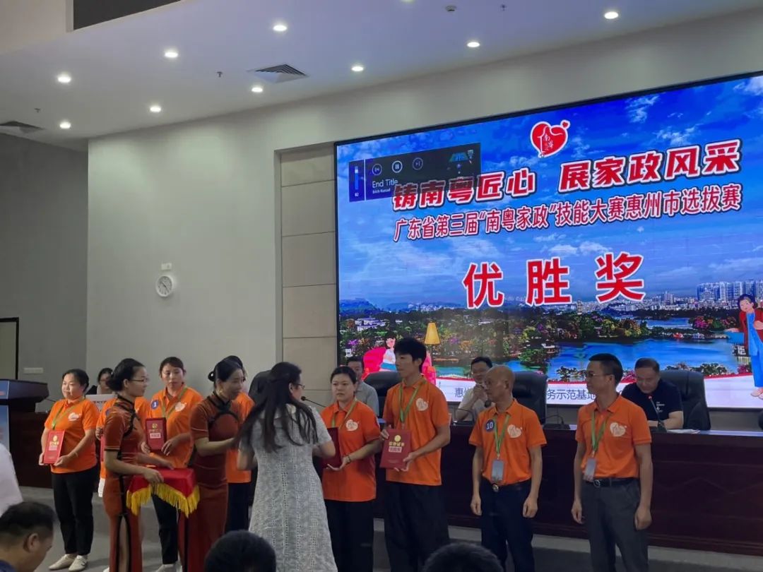 本次大赛由广东省人社局联合省总工会、省妇联举办,以“铸南粤匠心,展家政风采”为主题,围绕母婴、居家、养老、医护四大培训项目,分育婴员、家政服务员(健康照护师)、养老护理员、医疗护理员4大项目开展单人赛项竞赛,赛场模拟真实环境,对选手进行综合技能考核。护理学院8名学生代表学校参加此次竞赛,与技师学院、惠州市福利院、拓普家政等30名选手角逐养老护理、育婴员及医疗护理员版块省赛参赛名额。最终:养老护理版块叶静璇同学获得一等奖;育婴员板块姚晓艳同学获得二等奖;医疗护理员版块余思敏同学获得一等奖、周维悦同学获得二等奖、涂敏、侯颖同学获得三等奖、田洁钰、刘炜锋同学获得优胜奖!叶静璇、余思敏、姚晓艳、周维悦同学获得“鹅城家政员”称号!