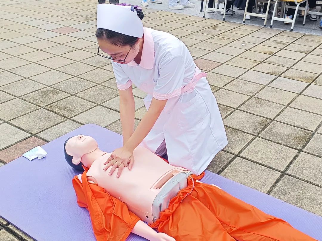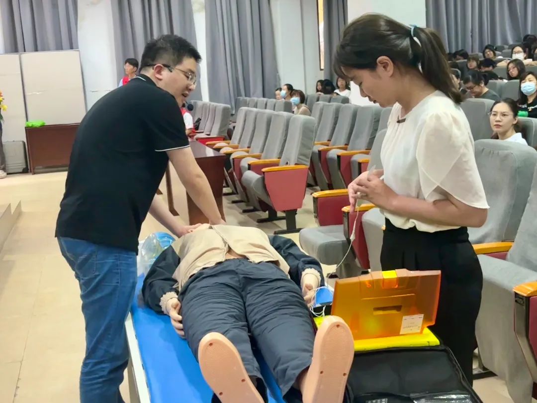 开幕式仪式结束后,我校特邀了惠州市第三人民医院急救创伤团队的专家李云桥主任和优秀校友护理师温伟莲给现场参会人员进行心肺复苏技能培训,由护理学院副院长何晓秋老师担任主持。李主任给我们带来了主题为《成人心肺复苏术-基础生命支持和高级生命支持》的讲座,随后,李主任和温师姐一起给现场师生们进行手把手心肺复苏技能的操作演示教学,他们用通俗易懂的语言、真实的案例讲解和示范了心肺复苏的操作技术和知识要点,通过实践操作,我校师生可以更好地理解和掌握心肺复苏技能,增强救护能力。