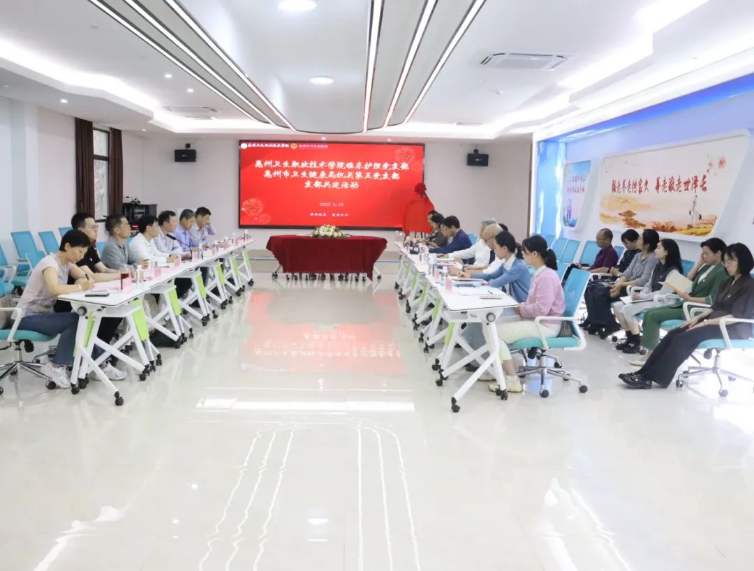 会议由惠州卫生职业技术学院党委委员、副院长、组织部长陈文主持。市卫健局党组成员、副局长邱惠源,惠州卫生职业技术学院党委副书记黄育强出席活动并致辞。双方党支部书记分别介绍了支部建设情况,并通过观看学校宣传短片,进一步加深了对彼此的了解。双方均表示,将以此次共建为契机,充分发挥各自优势,共同推动应急救护培训事业的发展。