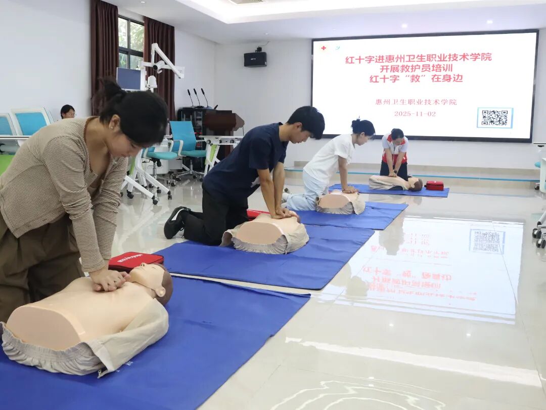 为强化学生应对突发事件的救援能力,践行红十字会“保护生命与健康”的人道使命,11月2日上午八点半,由惠州市红十字应急救护培训中心(惠卫职院)主办的第十一期应急救护员培训在护理实训楼211多功能会议室正式启动。