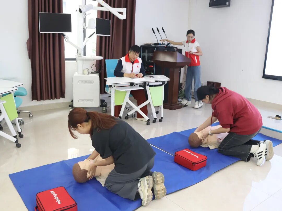 培训内容涵盖心肺复苏(CPR)、自动体外除颤器(AED)使用、海姆立克急救法以及外伤包扎技术四项核心技能。培训过程分为四个环节,包括理论讲解、实操示教、真人演练和互动问答。