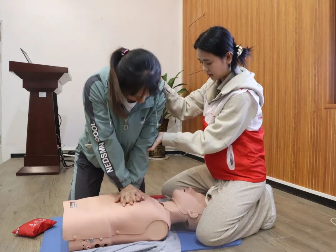 在随后的培训中,主讲教师李文婷分别从心肺复苏(CPR)、自动体外除颤器(AED)的使用、外伤包扎方法、以及外伤加压止血和烫伤处理方法等多个方面展开细致教学,此后还进行了理论知识测试,确保教与学有机结合。学员们聚精会神、积极互动,展现出极高的学习热情。