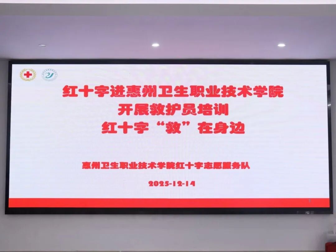 为提升学生应急自救互救能力,筑牢生命安全基础防线,由惠州市红十字应急救护培训中心(惠卫职院)主办的第二十期应急救护员培训,于2025年12月14日在护理实训楼211多功能会议室顺利举行。