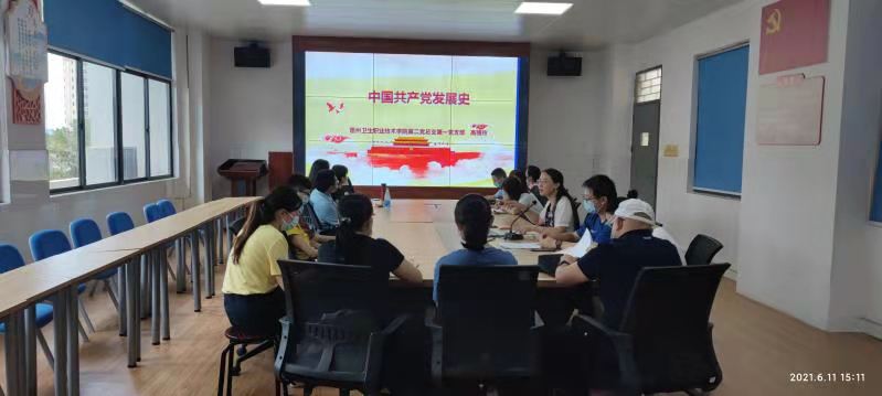 6月11日下午,我校第二党总支第一党支部在护理实训楼201开展党史学习教育主题党日活动。活动由支部书记高丽玲主持。第二党总支书记余赟和支部党员参加会议。
