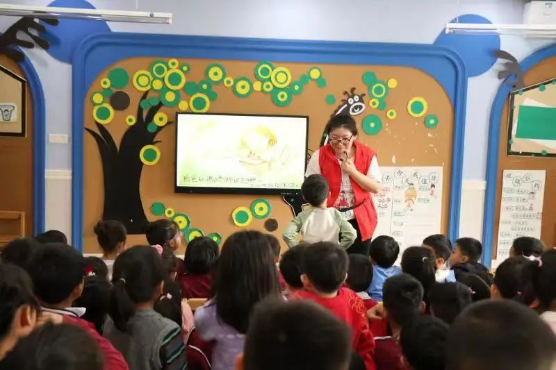 随后,庄佳娥老师通过新颖的提问方式,让小朋友们思考自己是如何来到这个世界上的。小朋友们都积极举手回答问题。