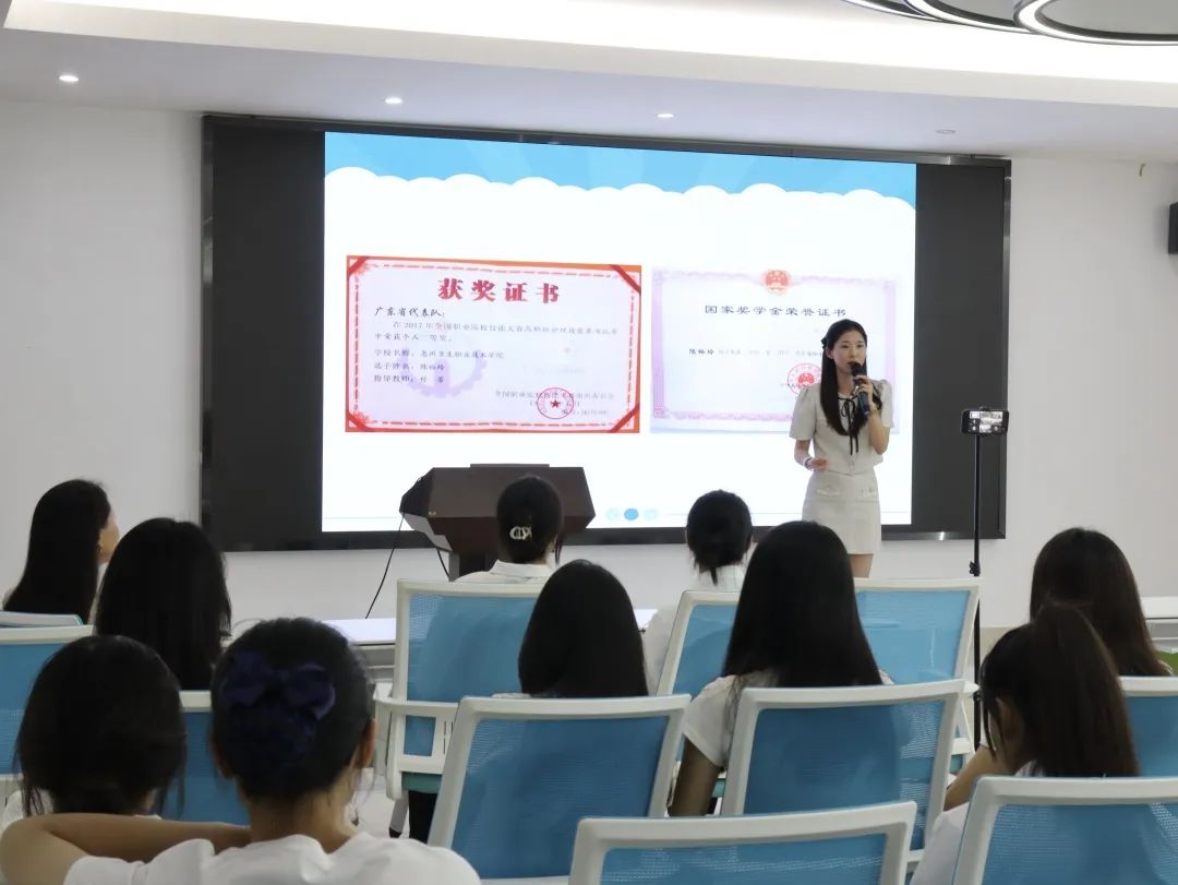 护理学院团委书记陈裕玲老师用自己的参赛经历,动员新同学们积极参加省级、国家级的技能竞赛,为自己的青春增添一抹亮丽的风采。