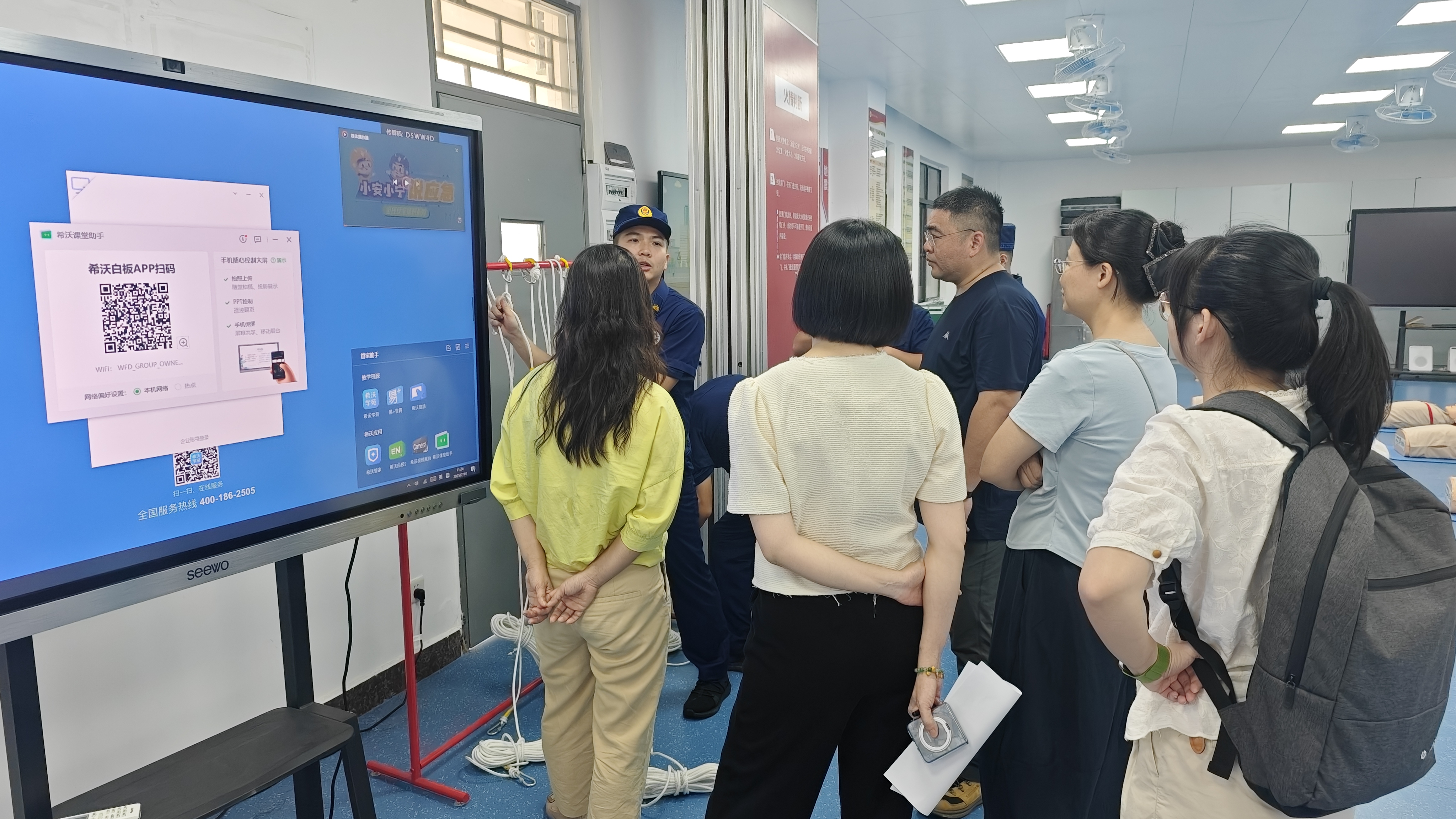 合影结束后,双方党员稳步前往校内的惠州市红十字应急救护培训中心。在这里,消防救援站党支部的党员与临床护理党支部的党员围绕急救技术、消防救援实操技巧展开深入交流。临床护理党支部党员现场演示了心肺复苏、创伤包扎等急救流程,消防员则分享了火灾现场救援中的安全防护与应急处置经验,互动频繁、气氛热烈,为后续业务互训奠定了实践基础。