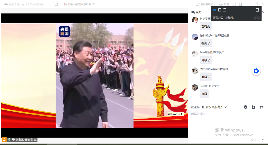 为使教学内容更加生动,本次团课充分利用线上平台的多样性,采用了观看视频与问答互动等形式。同学们观看了精心挑选的视频资料,直观地了解了共青团的光辉历程。其中,一段由护理学院优秀毕业生录制的视频格外引人关注。这位已在护理岗位上发光发热的毕业生,结合自身经历,分享了在共青团的培养下如何坚定理想信念,勇敢面对困难与挑战。她寄语各位入团积极分子:“共青团是我们成长道路上的重要引路人,它赋予我们责任与使命。在未来的日子里,希望大家时刻牢记共青团员的身份,保持对知识的渴望,对患者的关爱,用青春的热情去书写属于你们的精彩篇章,在医疗卫生事业中绽放自己的光芒,为守护生命健康贡献力量。” 毕业生真诚的话语让同学们深受触动,进一步明确了自己的努力方向。