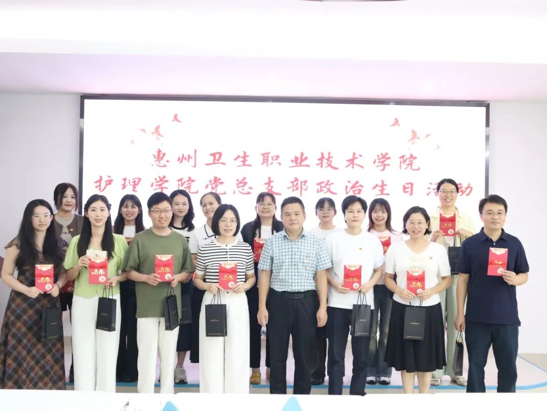 为切实强化党员的身份意识与责任意识,进一步增强党组织的凝聚力和战斗力,10月17日下午,惠州卫生职业技术学院护理学院党总支在智慧养老实训中心举行党员政治生日活动。惠卫职院副院长王士刚、护理学院党总支书记高丽玲以及院长余赟等领导,与全体党员及教职工共同参与了这场兼具政治意义与情感温度的特殊"生日会"。本次活动由护理学院团委书记陈裕玲主持。