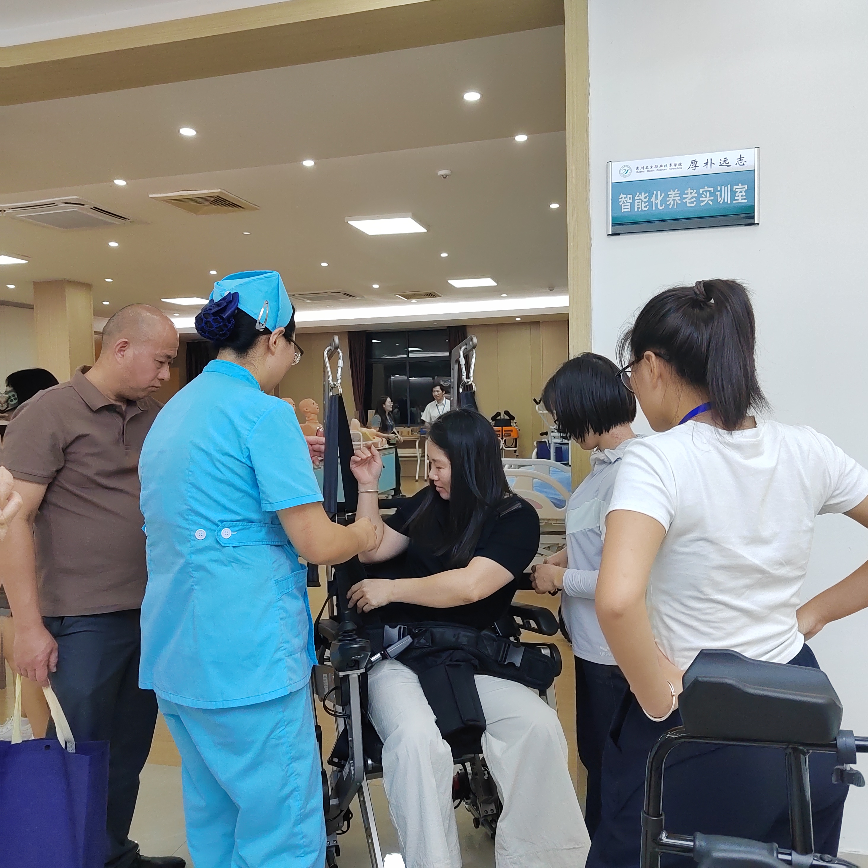 培训期间,课程设计紧扣行业痛点,形成“基础照护+专项技能+智慧应用”的系统化体系。学员分班深耕“老年人饮食排泄照护”“生理指标测量”“肢体康复训练”等核心模块,在助教团队指导下反复实操,攻克日常服务难点;夜间走进智慧养老实训中心,亲手操作智能照护设备,掌握科技助老新技能;10月17日下午更赴广州市老人院开展实地研学,学习先进机构运营模式与认知障碍老人照护经验,实现“课堂学理论、机构练实战”的无缝衔接。