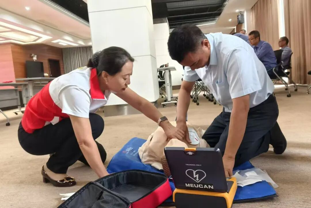 模式创新:“党建+急救”锻造标准化育人体系。在党总支的统筹下,学院创新“理论+实操+考核”一体化教学模式,党员教师带头钻研教学方法,将心肺复苏(CPR)、自动体外除颤器(AED)使用、海姆立克急救法等核心技能拆解为标准化教学模块。党员讲师结合临床案例讲解急救“黄金时间”,党员助教团队通过模拟教具演示操作细节,让每一场培训都成为“党建+业务”深度融合的生动课堂,确保学员从知识理解到技能掌握无缝衔接。