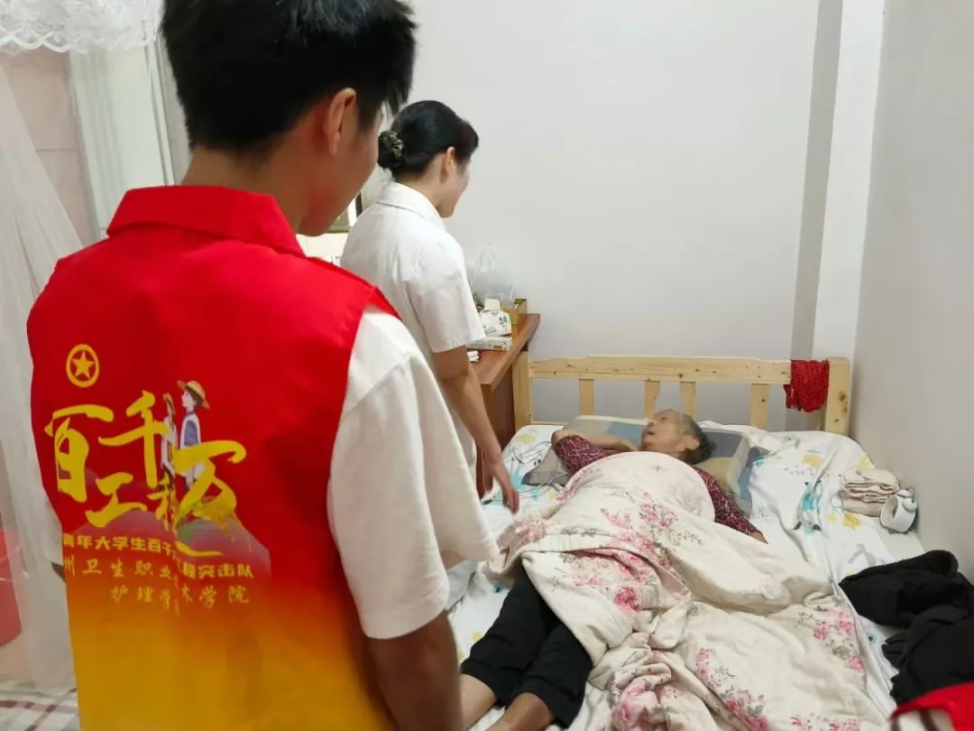 下午16时由黄淑萍老师带领学生和镇隆镇中心卫生院工作人员走访入户,为两位患有慢性疾病的患者进行健康评估,为患者制定了居家护理方案,日常饮食管理,用药安全指导,康复锻炼(包括呼吸功能、肌力、关节功能锻炼),体位管理,跌倒预防,家用制氧机的管理以预防肺部感染措施等,同时黄淑萍老师现场为学生进行讲解教学,在讲解时黄老师强调在护理过程中要注重人文关怀、有效的健康教育技巧、医院交叉感染与自身职业安全防护等知识,在她的指导下,学生亲自为患者实施肌力评估、关节功能锻炼指导、体位安置等操作。