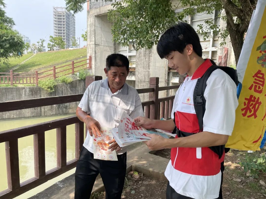 9月14日是第25个“世界急救日”,为提高群众急救知识和技能,应对紧急情况,提高自救互救能力,市红十字水上救援志愿服务队与护理学院三位教师代表、数名学生会干部共同前往隆生大桥水训基地开展宣传活动。