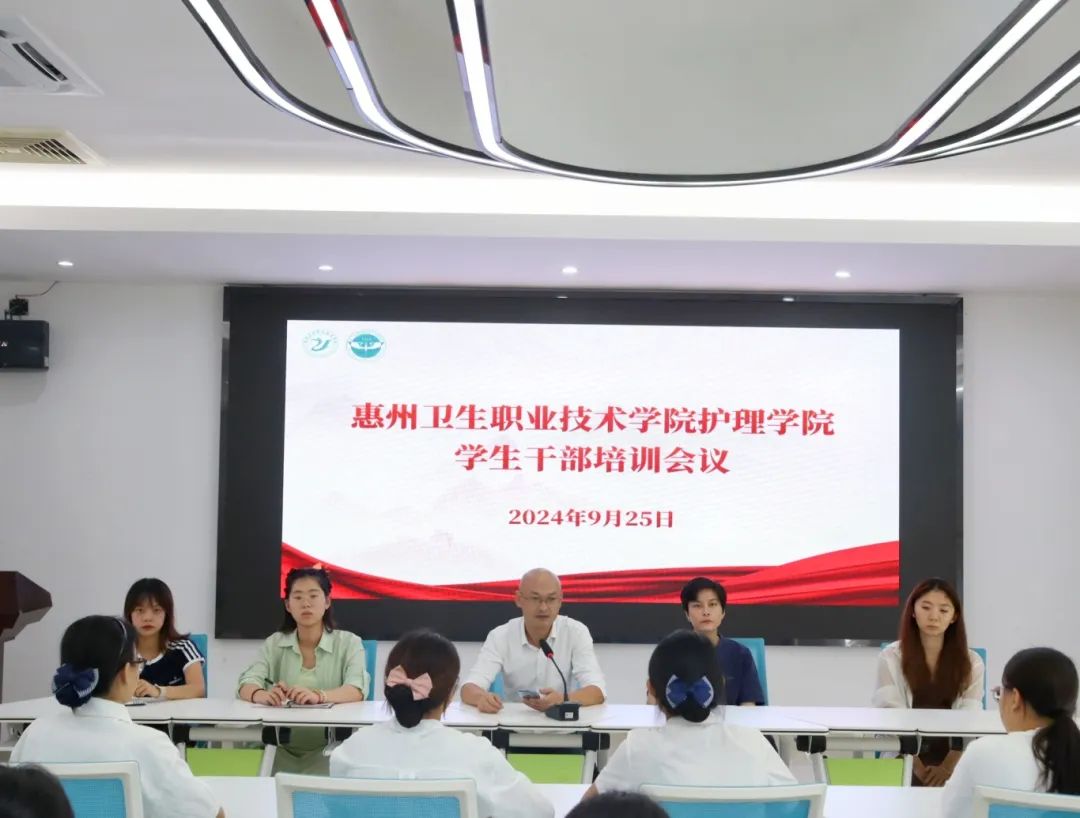 为充分发挥护理学院学生干部的思想引领和模范带头作用,提高我院学生干部工作能力和综合素养,增强学生干部的责任感和使命感,9月25日中午,护理学院在养老实训室召开惠卫职院护理学院学生干部培训会议。出席本次大会的老师有护理学院党总支书记江有、学院副院长钟晓璇、学院团委书记陈裕玲、学院团委副书记谢怡琪、自律会指导老师周芷蕊以及学院学生会、自律会全体学生干部。本次大会由江有书记主讲。