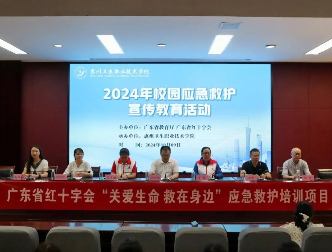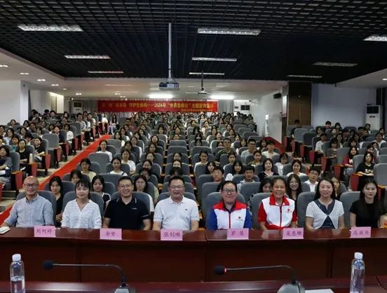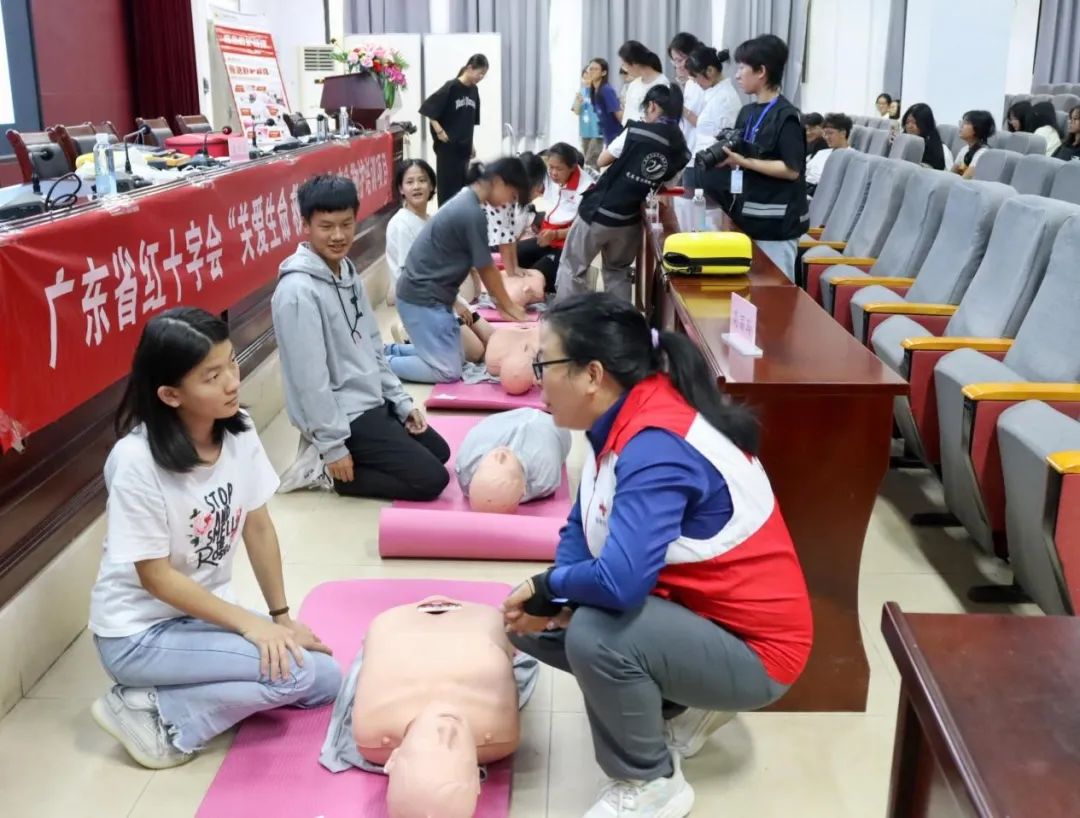 为贯彻落实教育部关于做好全国学校急救教育试点建设管理工作及进一步加强和改进新时代学校红十字工作的有关精神,以及广东省教育厅、广东省红十字会关于开展2024年校园应急救护宣传教育活动的通知精神,积极推动应急救护知识技能在校园普及,2024年10月09日,在学校多功能报告厅,成功举办了2024年校园应急救护宣传教育活动。此次培训报广东省教育厅、广东省红十字会审批,广东省红十字会救护培训专家罗慧老师担任主讲,吴惠珊老师协助,学院副校长张钊琳、学生工作部部长余赟、团委书记刘柯婷、护理学院党总支书江有、护理学院院长高丽玲,以及近400名师生代表参加了本次培训。