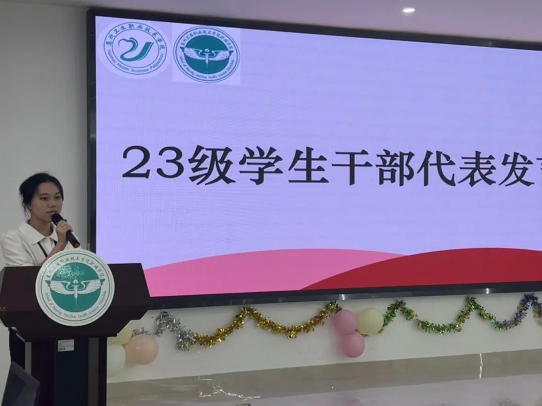 而后23级负责人代表史皓月同学发言,她向自律委员会的新成员们表达了最诚挚的祝福与鼓励。也鼓励新生们积极学习,积极面对挑战。在自律会实践中不断提高自己,共同为校园建设贡献自己的力量。