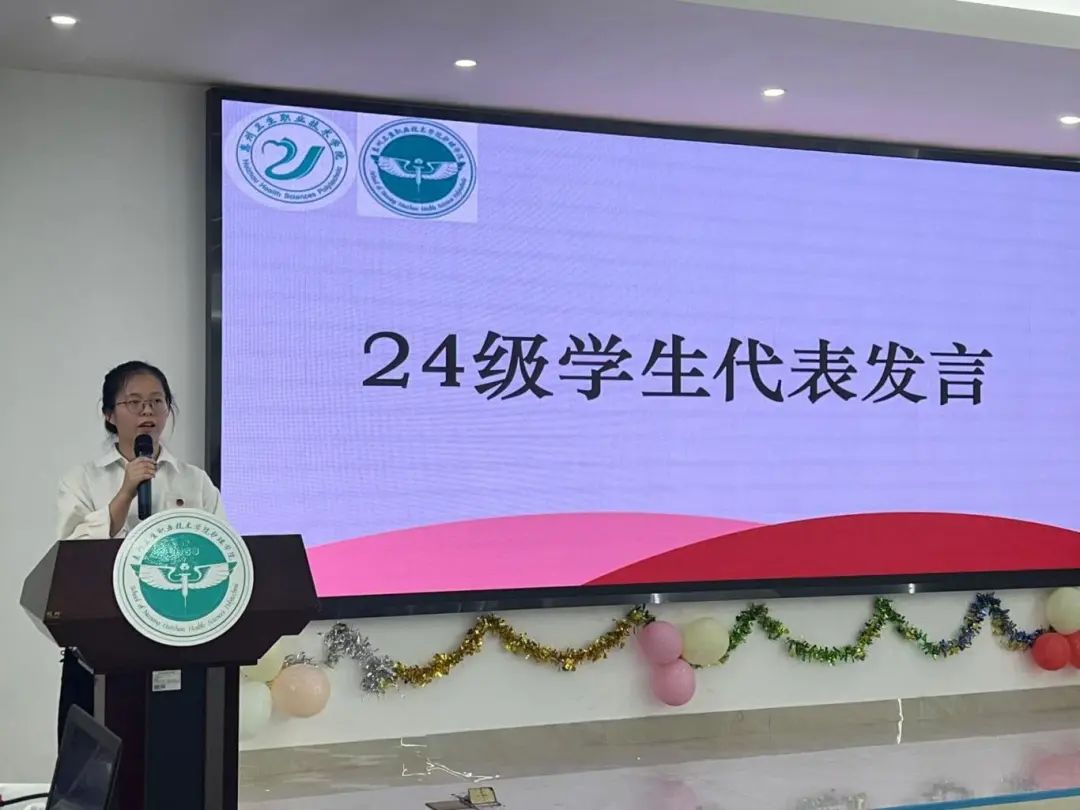 紧接着是24级新生代表罗方舒发言,她用铿锵有力的声音,代表24级成员们讲出自己坚定的誓言与未来的展望。作为新青年,他们将于自律会的舞台上锻炼自己,脚踏实地, 以梦为马,不负韶华,用智慧和汗水书写属于自己的辉煌篇章,为校园和祖国的繁荣富强贡献青春力量。