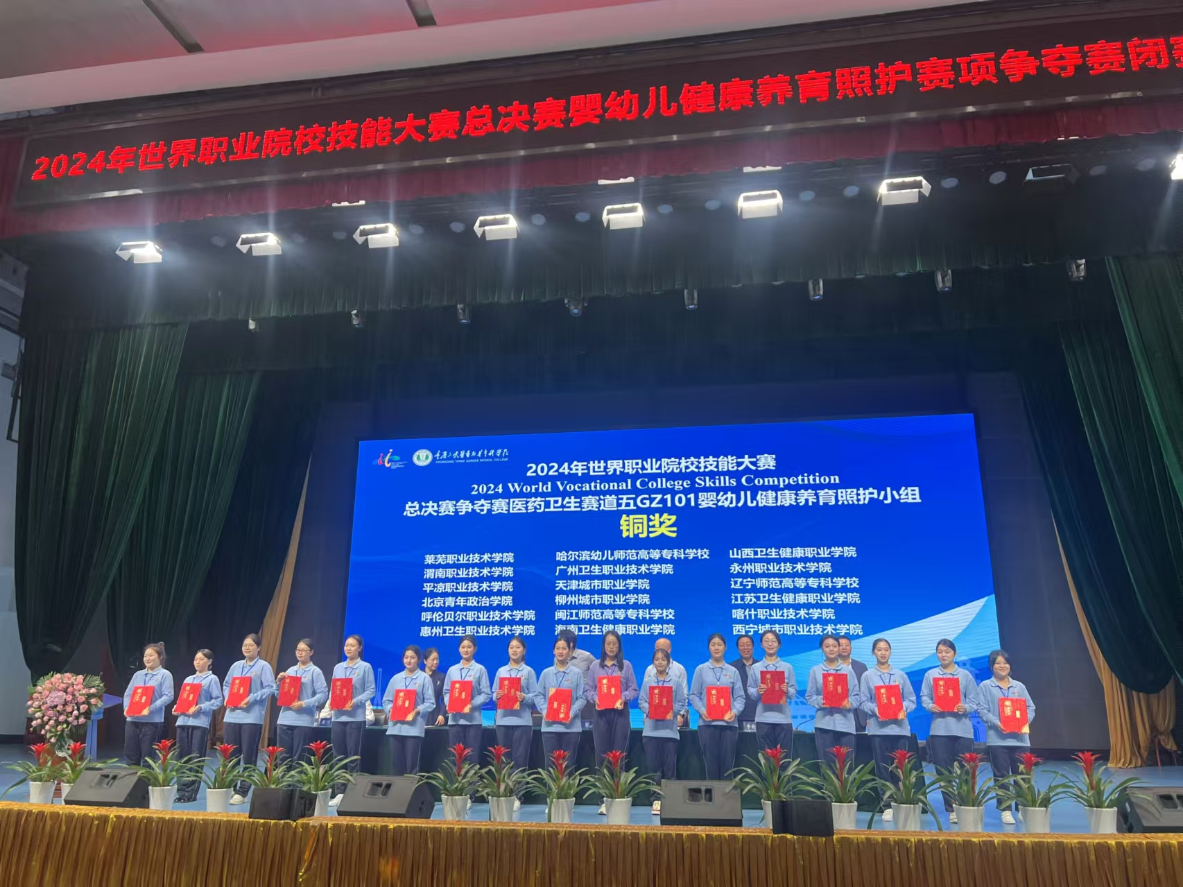 10月27日,2024年世界职业院校技能大赛总决赛医药卫生赛道五婴幼儿健康养育照护赛项争夺赛在重庆三峡医药高等专科学校正式开赛,来自全国高职院校的60支代表队,212名参赛选手齐聚一堂,展开一场技艺精湛的技能较量。