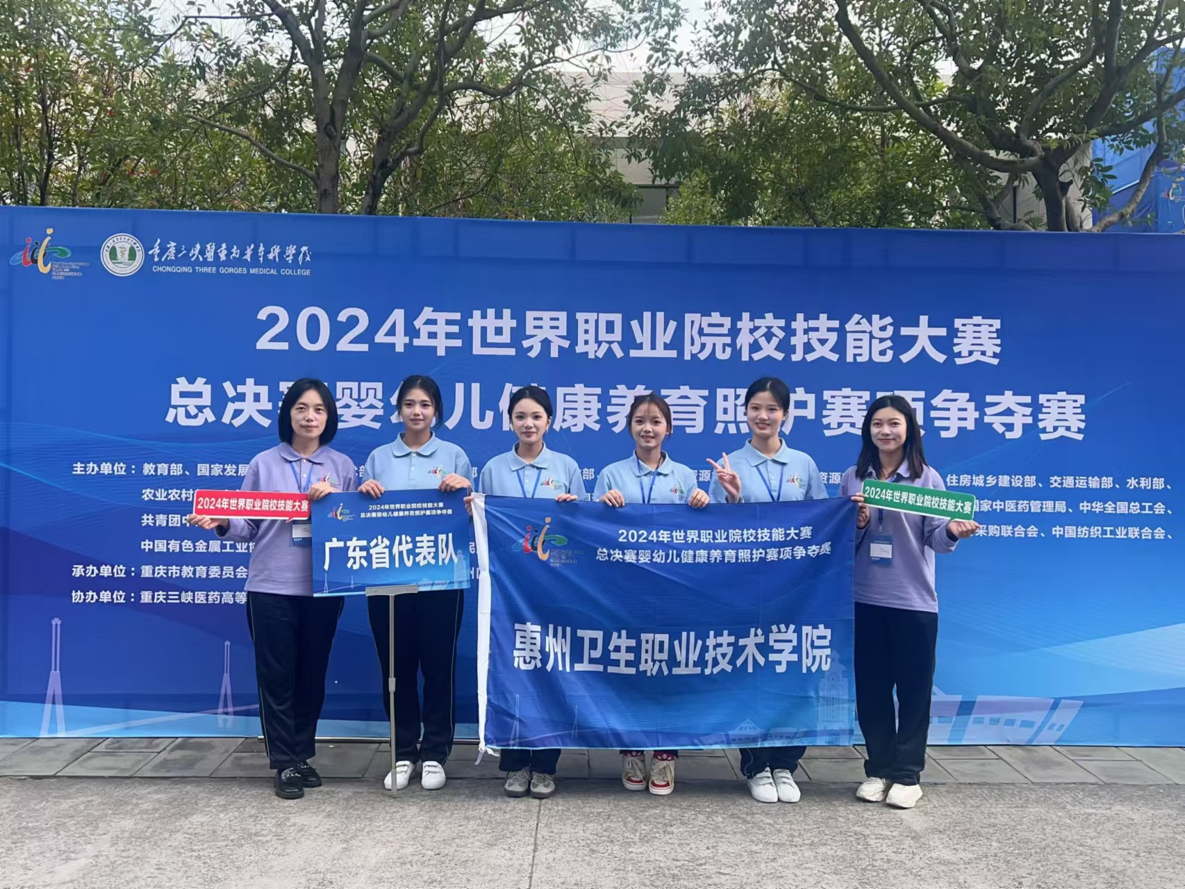 我校婴幼儿托育服务与管理和护理专业学生罗心爱、黄慧怡、林佳欣、刘巧在郑良芬、苏小燕两位老师的指导下,由临床学院院长吴慧带领参加此次比赛,经过3天的激烈的赛事争夺,我校选手发挥稳定,最终获得铜奖。
