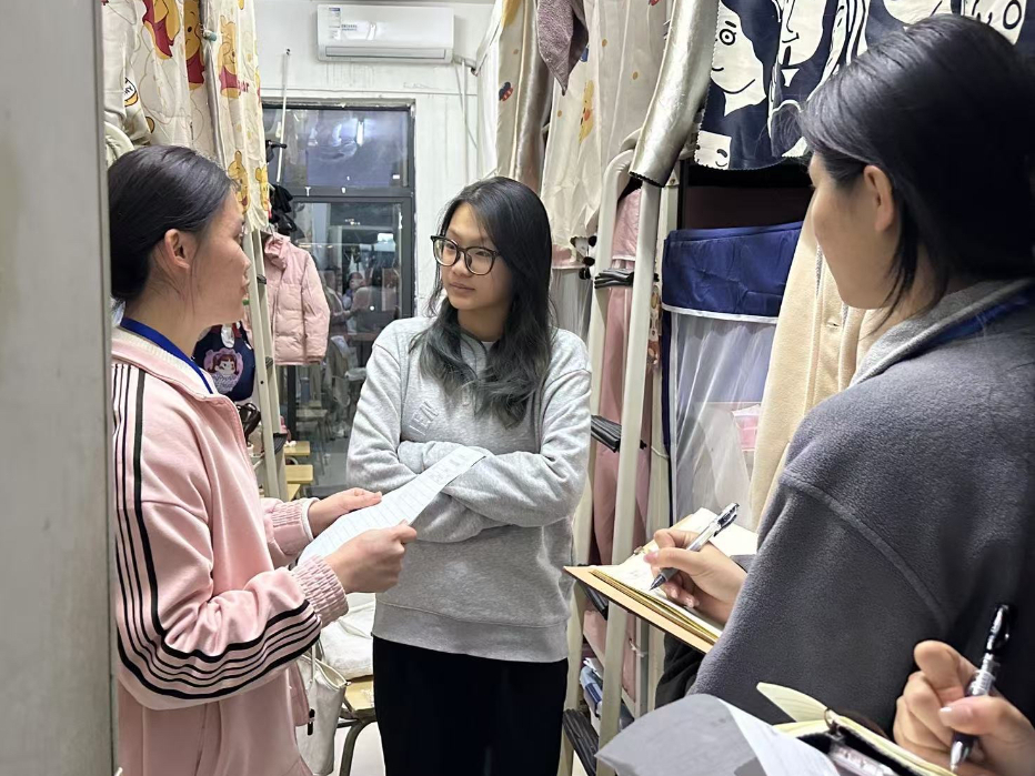 随着冬至的到来,为了深入了解同学们在宿舍的日常生活状况及需求,并确保一个优良的学习与生活环境,护理学院权益部的“温馨使者”团队于2024年12月17日晚上举办了一次基础的宿舍访问活动。本次活动的核心目标是通过交流对话,搜集同学们关于宿舍设施改进以及学习生活方面的意见和需求,旨在为同学们打造一个更加舒适、便利、和谐的学习与生活环境。