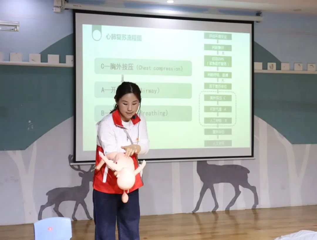 为贯彻执行国家健康中国行动,使更多幼儿园教师掌握儿童急救知识和技能,确保在紧急情况下,幼儿园的孩子们能够获得及时而有效的救助。惠州富盈公馆幼儿园联合惠州卫生职业技术学院的老师一同开展了一场以《小儿心肺复苏术》为主题的急救培训课程。