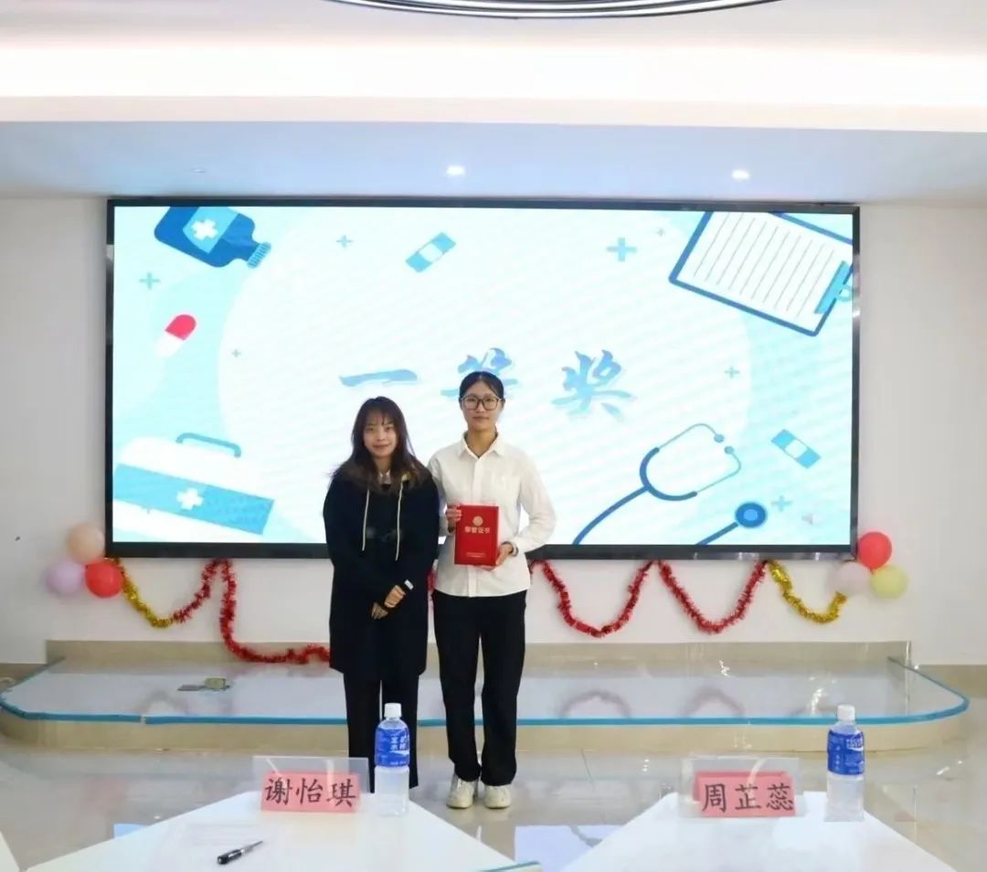 互动环节结束后,迎来了激动人心的颁奖环节。现场的评委和嘉宾一一上台,与获奖选手合影留念,共同分享这份喜悦。医学的海洋浩瀚无垠,健康的使命永不停歇!愿护理学院的同学们以知识为舟,以仁心为帆,在守护健康的航道上勇往直前,乘风破浪!