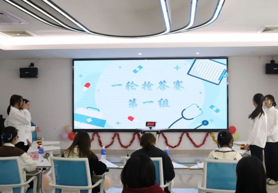 医学,既是一门探索生命的科学,亦是一种守护健康的艺术。为丰富校园文化底蕴,弘扬自主学习、勤奋探讨的优良风尚,护理学院于2025年4月1日晚七点在养老实训室隆重举办了“知护健康,‘医’站到底”知识竞赛决赛。出席本次比赛的嘉宾及评委包括:护理学院团委副书记谢怡琪老师、护理学院自律会指导老师周芷蕊老师、护理学院学生会主席严志琴、护理学院组织部负责人程焰芳。