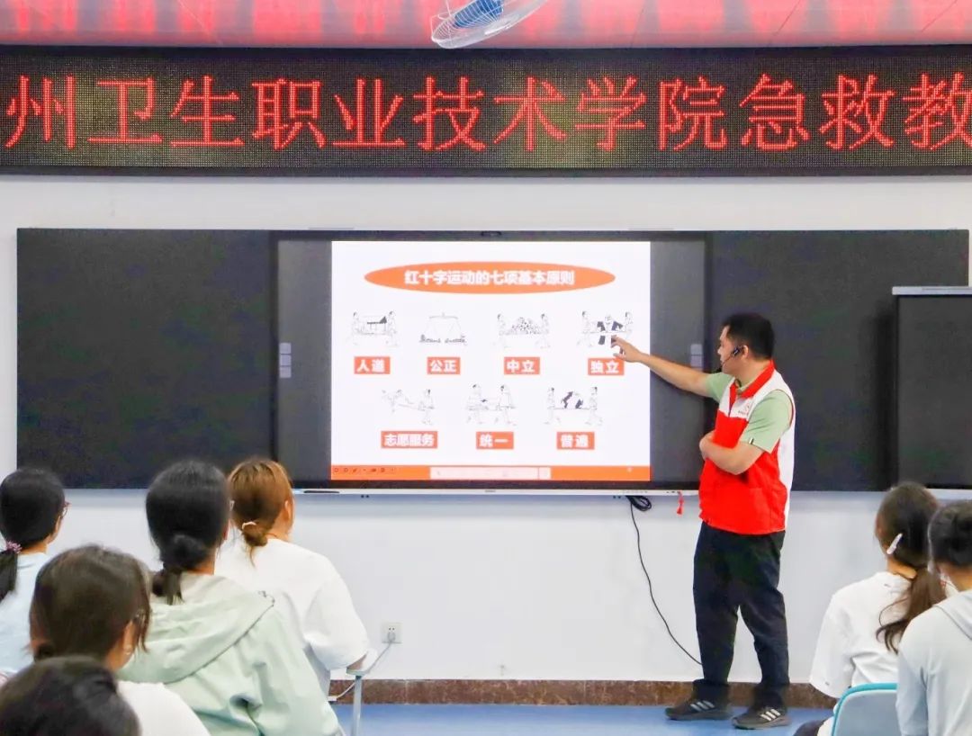 4月26日周六上午,由惠州市红十字会主办,惠州卫生职业技术学院护理学院承办,急救协会和护理协会统筹协办的第十二期红十字应急救护员培训在我校应急救护培训中心(实训楼509)顺利举行。本次培训由惠州市红十字医疗救援志愿服务惠阳分队副队长何宇胜担任主讲,李学彬、刘瑞英、钟国兴、赖红瑛担任助教。护理学院五十名学员怀着"守护生命"的信念参加了此次专业培训。