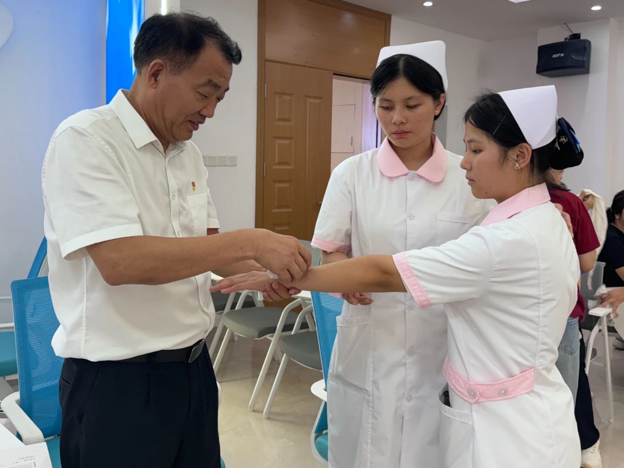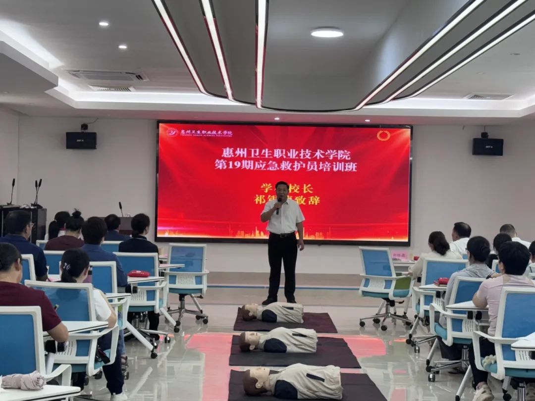 2025年7月3日,惠州卫生职业技术学院第十九期红十字应急救护员培训班在护理实训楼智慧养老实训中心正式开班。为全面提升校园应急救护能力,校党委书记书记严丽娜、院长祁银德、副院长陈文、张富强、严耀良带头参加本次培训。他们以高度的责任感和实际行动,彰显了学校对师生生命安全的高度重视,传递了“人人学急救,急救为人人”的理念,为全校师生作出了表率、树立了标杆。这一举措有效激发了广大师生学习急救的热情,为构建“平安校园、健康校园”注入了强劲动力,对推动急救知识普及、提升校园安全水平具有重要的示范作用。