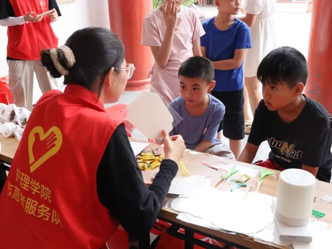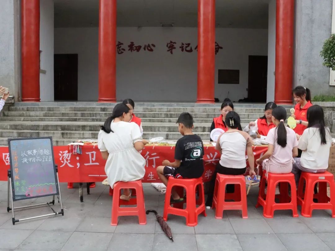 为深入贯彻落实习近平总书记关于“保护好、传承好、利用好”非物质文化遗产的重要指示精神,增强民族文化自信,推动中华优秀传统文化创造性转化、创新性发展,助力国家“百千万工程”的实施,7月6日,护理学院红潭卫梦队伍前往高潭老苏区革命纪念堂前广场,开展了一场别开生面的非物质文化遗产手工制作活动。此次活动以“巧手承非遗,匠心护传统”为主题,通过“宣传+摆摊”的形式,将非遗文化带进高潭镇,让当地居民近距离感受传统文化的魅力。