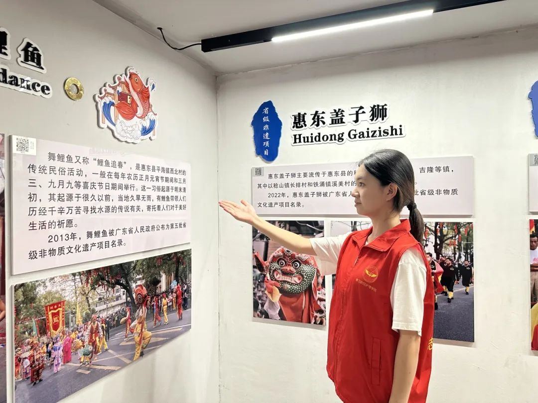 在博罗非遗展示馆,队员们深入了解了罗浮山百草油、博罗凉果等传统技艺产品,以及舞貔貅、大鼓凉伞等民俗表演。馆内丰富的实物展品和图文资料,让队员们对博罗县的非遗保护与传承工作有了更深刻的认识。