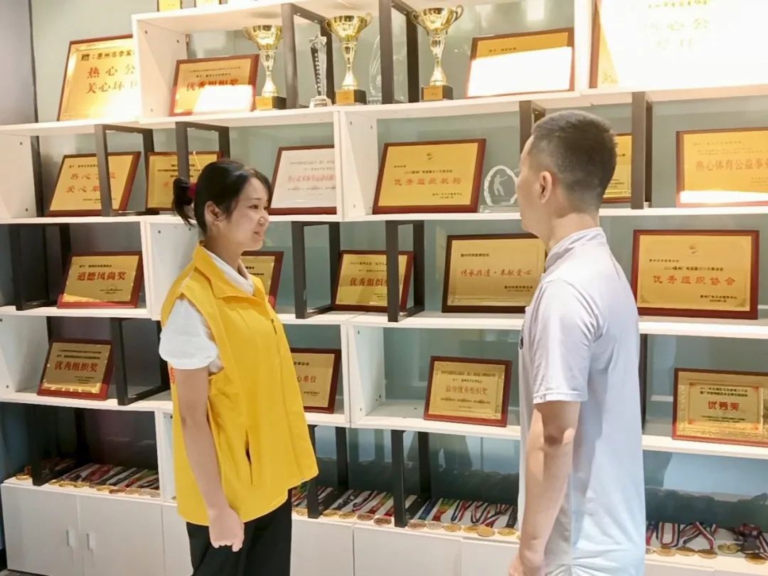 在黄秋荣师傅的带领下,实践队参观了李家拳文化展区,了解其深厚的历史底蕴。展区内一面醒目的荣誉墙上,陈列着各式奖杯、奖牌和牌匾,见证了李家拳在当代的传承与创新。