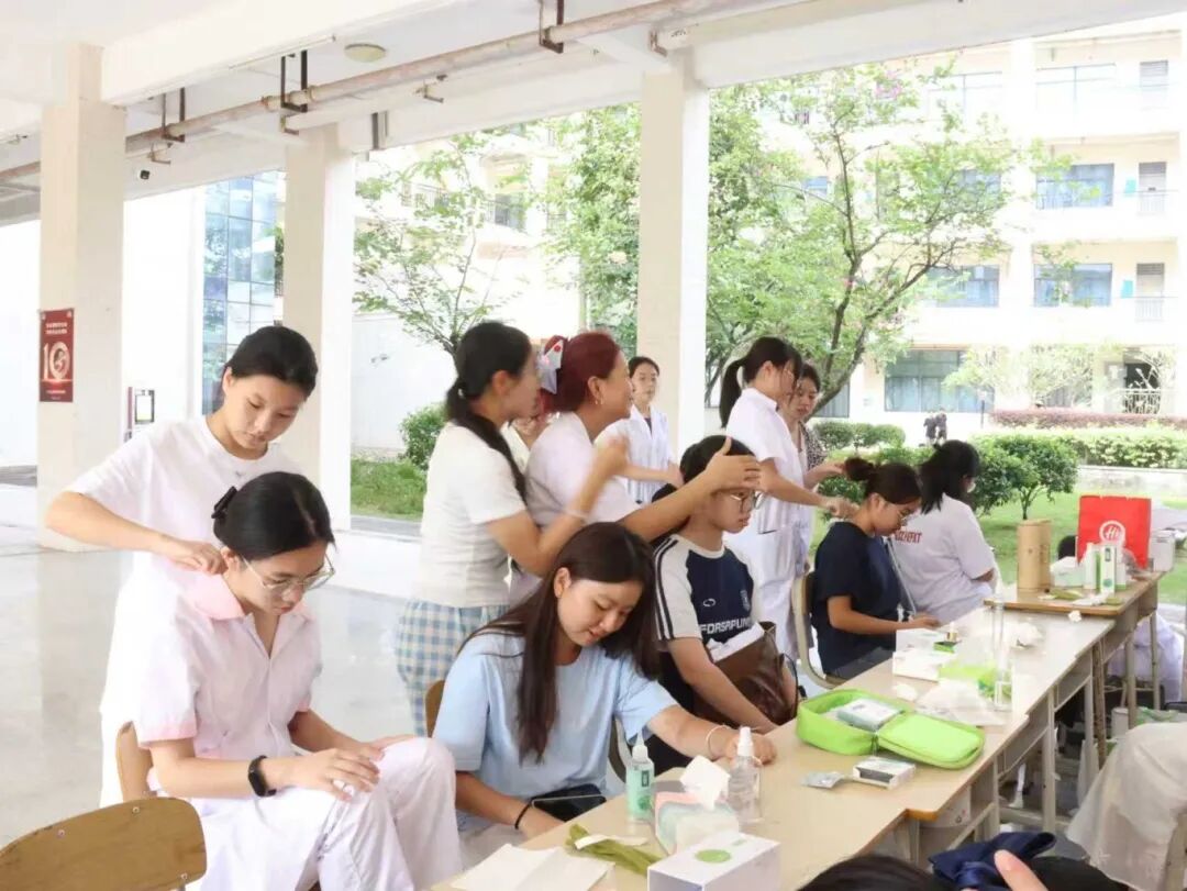 中医理疗服务区前更是排起长队,刮痧、推拿、针灸等特色服务备受青睐,志愿者们手法娴熟、一丝不苟,同时结合中医理论讲解颈肩腰养护、作息调节等实用保健方法,有效缓解了师生们因久坐学习、熬夜工作引发的颈椎腰椎酸痛、肩周不适、脱发等常见问题。