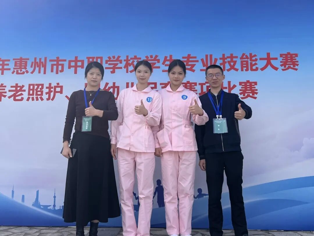 近日,在2025年惠州市中职学校学生技能大赛护理与养老照护赛项中,我校参赛团队表现卓越,凭借扎实的专业技能与沉稳的赛场发挥,在激烈竞争中脱颖而出,双双包揽各赛项前两名,荣获一等奖,并成功晋级全省决赛。