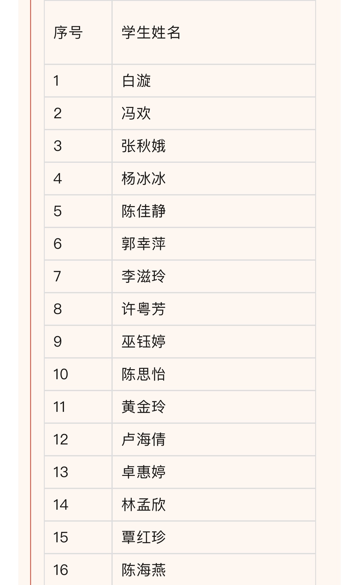 护理学院|国家奖学金、国家励志奖学金初审名单公示 时间:2025-09-30 作者: 游览: 字号:小中大 根据《广东省教育厅关于做好2025年秋季学期学生资助工作的通知》文件精神,结合学生的思想品德、学习成绩、社会实践、科技创新等综合表现,由学生本人申请,辅导员审核,护理学院初评推荐,拟推荐严志琴等5名同学至学工部做“国家奖学金”最后评选;拟推荐白漩等87名同学至学工部做“国家励志奖学金”最后评选,现予以公示。 国家奖学金获奖学生初审名单: 严志琴、刘梦如、陈亿桦、蔡俊妍、何慧君 国家励志奖学金获奖学生初审名单:
