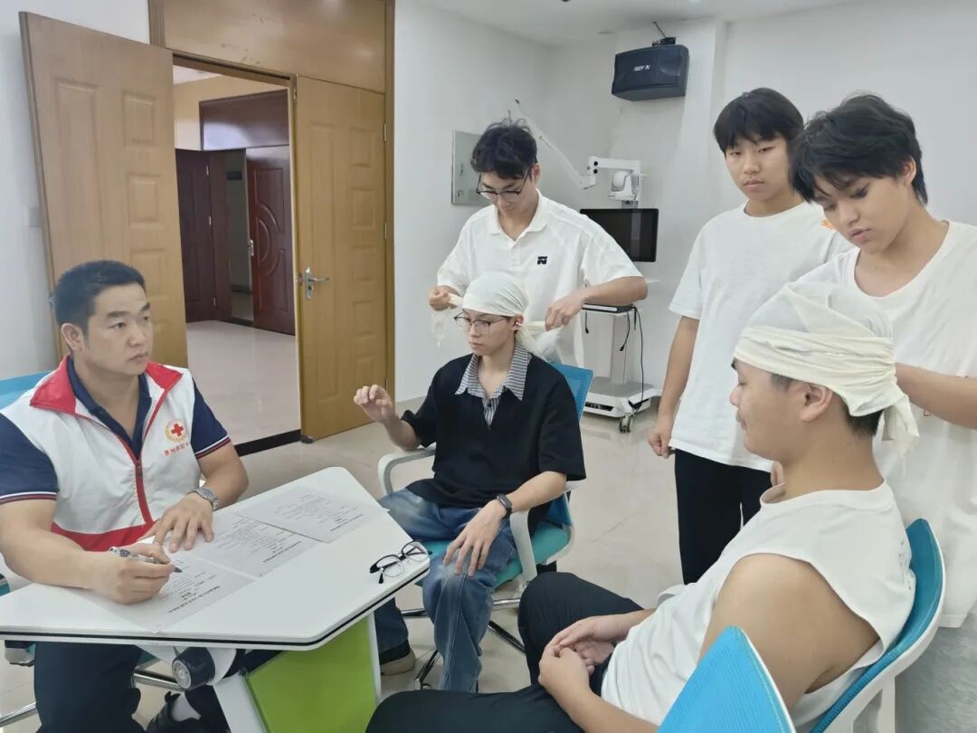 在实操示教环节,助教老师们分组指导,针对三角巾的多种用途,以及头部、手部等不同部位的包扎方法进行了手把手教学。在模拟急救场景中,学员们两人一组,积极投入练习,互相扮演施救者与伤者,在助教老师的严格把关下,不断打磨技术动作,确保了培训的实效性与精确性。整个现场学习氛围浓厚,操作流程紧张有序,学员们通过亲身体验,将理论知识渗透到我们的日常生活中。