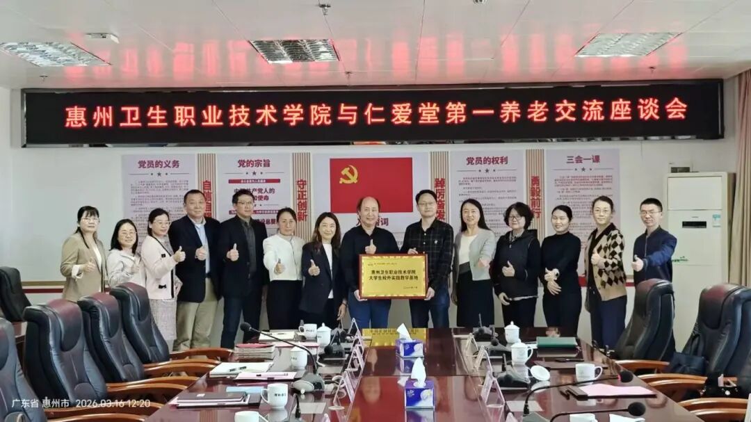 为深化校政企协同育人,精准对接港式养老产业人才需求,推动港式养老服务人才培养模式落地见效,3月16日上午10:30,惠州卫生职业技术学院在行政楼407会议室召开港式养老人才培养实习就业协调会。香港仁爱堂培训及项目拓展科总监邓惠玲、银发产业学院负责人郑叶芝,第一养老集团董事长席剑涛、高级院长孙旭星、副总裁王丽娟等企业代表,我校副校长陈文,实习与就业指导部、护理学院相关负责人及养老专业骨干教师共同参会。会议由护理学院党总支书记高丽玲主持。