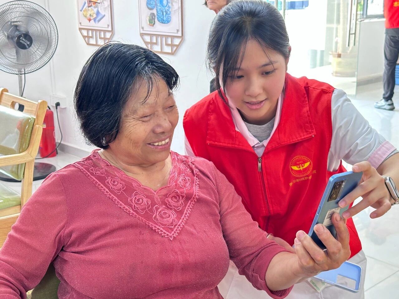 为弘扬敬老爱老传统美德,切实解决社区老年人在健康养护、智能使用及精神文化方面的实际需求,营造尊老、敬老、爱老、助老的良好社区氛围,3月31日下午,护理学院党总支联合唤本有开展志愿服务活动。护理学院院长余赟,院团委书记陈裕玲、副书记谢怡琪,唤本有教师丁文俊带领志愿服务部学生前往三栋镇居家养老综合服务中心开展“情暖社区·智慧助老”志愿服务活动,以实际行动践行初心使命,为社区老年居民送上贴心关怀与温暖陪伴。