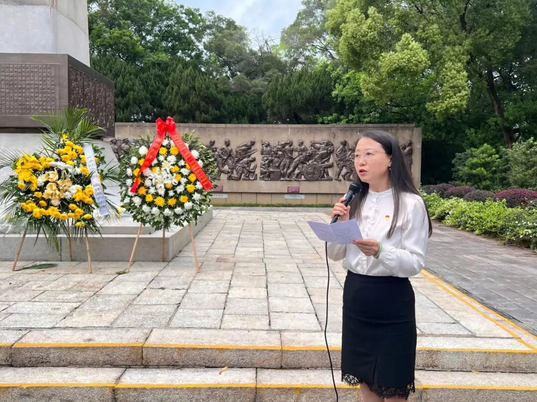 学生代表张紫怡宣读倡议书,号召广大青年以革命先烈为榜样,不忘初心、牢记使命,踔厉奋发、笃行不怠,争做有理想、敢担当、能吃苦、肯奋斗的新时代好青年,让青春在全面建设社会主义现代化国家的火热实践中绽放绚丽之花。