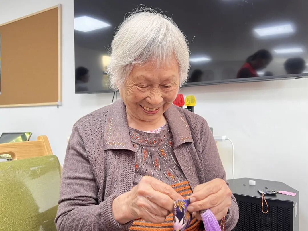 作为本次活动的特色环节,流苏香包制作体验区充满了温馨气息,志愿者们提前准备好布料、流苏、香料等材料,以耐心细致的态度,一步步教老人们填充、缝制、装饰。老人们兴致高昂,认真跟着志愿者学习,互相交流制作技巧,现场氛围热烈而融洽。不一会儿,一个个造型精致、香气四溢的流苏香包就制作完成了,老人们捧着自己亲手制作的香包,脸上洋溢着幸福的笑容,既感受到了手工制作的乐趣,也收获了一份专属的美好回忆,在动手实践中丰富了精神文化生活。